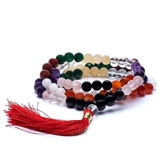 Mala astrologique '9 planètes/ 9 pierres' - 108 perles de 7 mm - 75 cm. Pochette de rangement incluse !