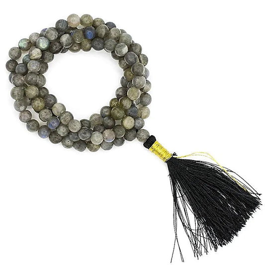 Mala en Labradorite de 108 perles - 6 ou 8 mm (au choix) - Taille de 65 à 85 cm. Pochette de rangement incluse !