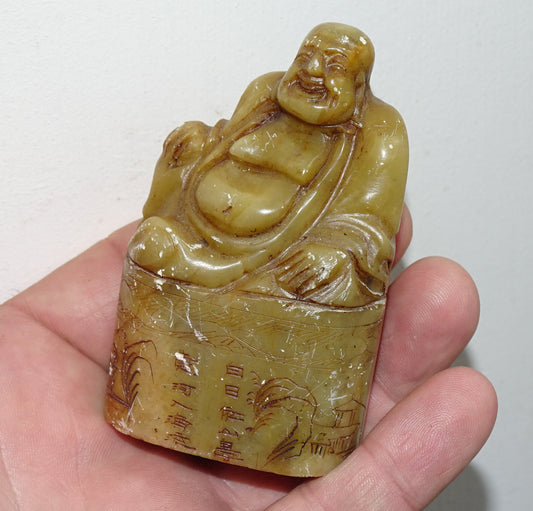 Ancien Timbre/ tampon encreur en pierre sculptée avec représentation de Bouddha. 91mm x 50 x 20 / 180 gr. Très belle pièce des années 70/80 !
