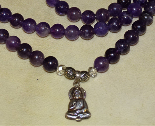 Création Zen Curiosity - Mala de 108 perles en améthyste - 88 cm de long avec pendentif de Bouddha en Argent !