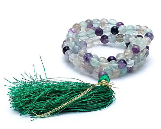 Mala en Fluorite de 108 perles - 6 ou 8 mm (au choix) - 65 ou 85 cm. Pochette de rangement incluse !