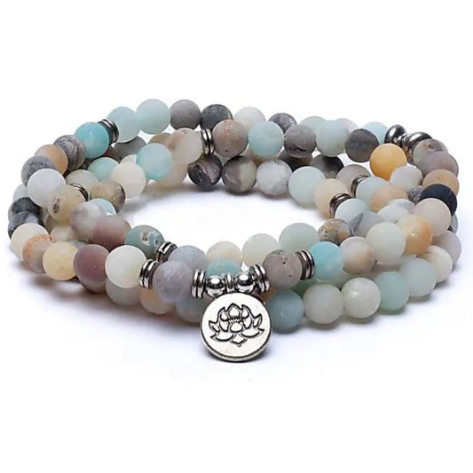 Mala en Amazonite de 108 perles de ±6 ou 8 mm- 65 à 85 cm - Pochette de rangement incluse !