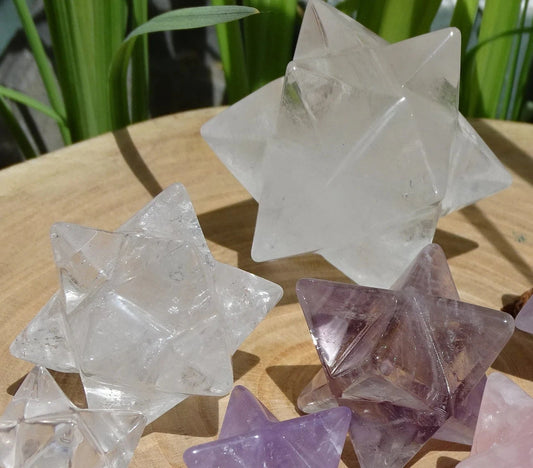 Mercaba/ Mercabah/ Merkabah (étoile à 8 branches), en Cristal de roche (quartz). De 15x15x15mm - 5 grammes. Qualité A à AAA !