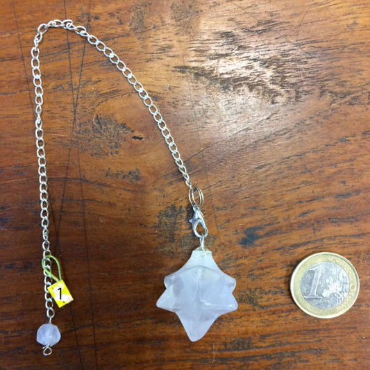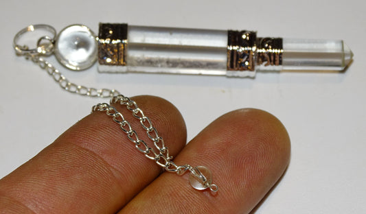 Pendule en cristal de roche - 8 cm de cristal + chainette de 18 cm. Pour radiesthésie, pour professionnel ou débutant !
