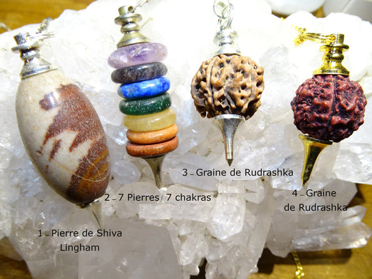 Sélection de pendules, modèles au choix simple ou avec chainette 7 chakras. Pour radiesthésie, pour professionnel ou débutant, parfait !