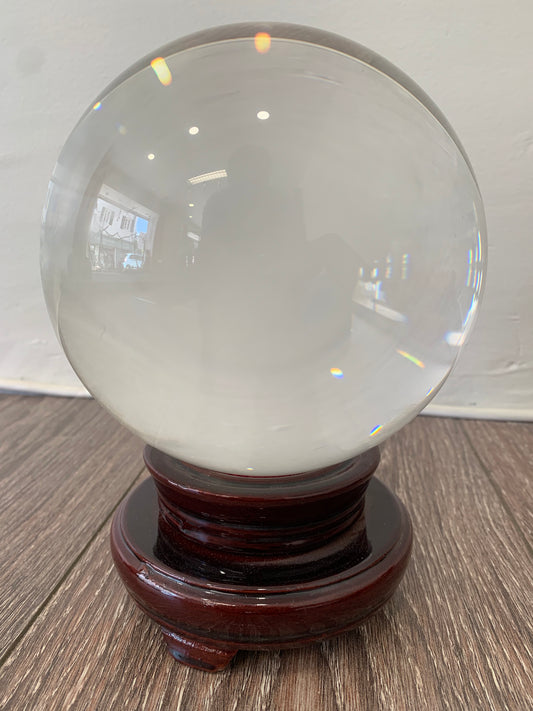 Boule de cristal 🔮 - De 15 cm - 5,3 kg. Vendu avec un support en bois exotique, très bonne qualité de transparence, parfait !