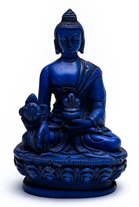 Bouddha 'Médecine', belle statuette de couleur bleu (Style lapis lazuli) - 11 centimètres de hauteur - 195 grammes !