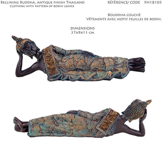 Bouddha couché de 36 x 9 x 11 cm - 596 gr. - Habillage en véritable textile et liège !