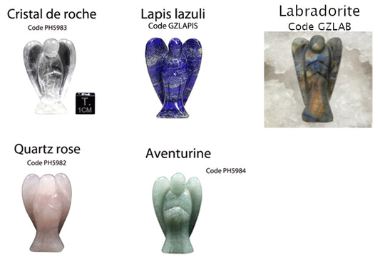 Sélection d'anges en pierres au choix : quartz cristal/ quartz rose/ aventurine/ lapis lazuli/ labradorite - 4 à 5 cm - 15 à 20 gr. - Trés belle finitions !