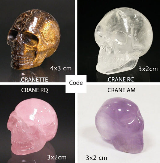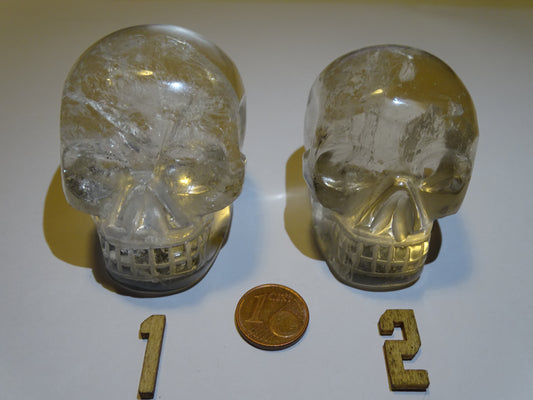Crânes en Cristal de roche (quartz), 2 pièces au choix de 57 à 50mm. Fait main, très belle qualité !