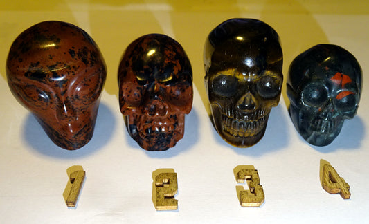 Sélection de 4 Crânes en pierres. Pièces au choix, de 40 à 50 millimètres. Belles qualités, de belles finitions, magnifiques pièces !