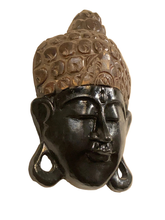 Masque mural de Bouddha en bois, sculpté et peint à la main au Népal, pour décoration intérieure – 25 × 15 × 7 cm