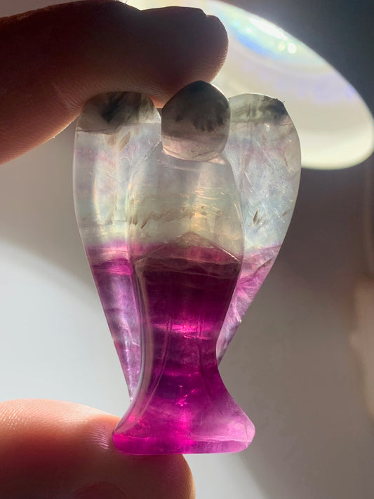 Ange sculpté en fluorite multicolore (violet & bleu) – Pièce décorative 53 × 30 × 18 mm – 43,4 g