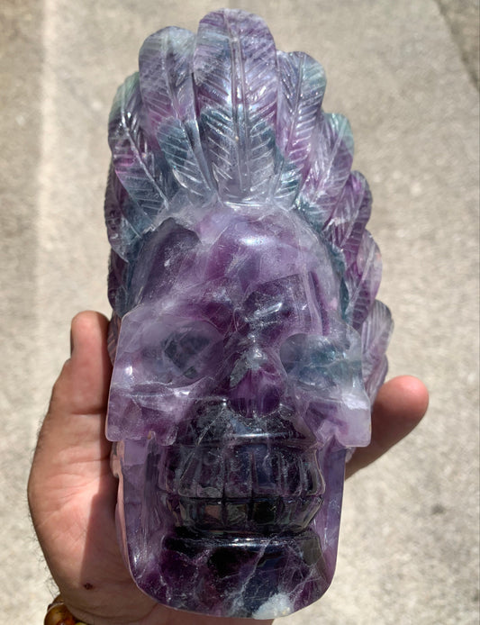 Crâne en Fluorite multicolore fait main, de 18x10x9 cm / 1450 gr. Très belle qualité, de belles finitions, magnifique pièce !