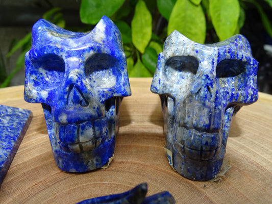 Sélection de 2 Crânes en lapis lazuli, pièces au choix, de 58 à 55 mm. Très belle qualité, de belles finitions, magnifiques pièces !