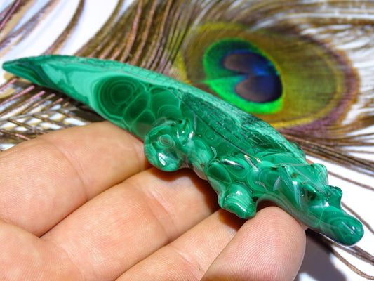 Malachite, superbe crocodile de 83,7 grammes - 122mm x 32 x 17. Parfait pour une collection, exposition, décoration ! !