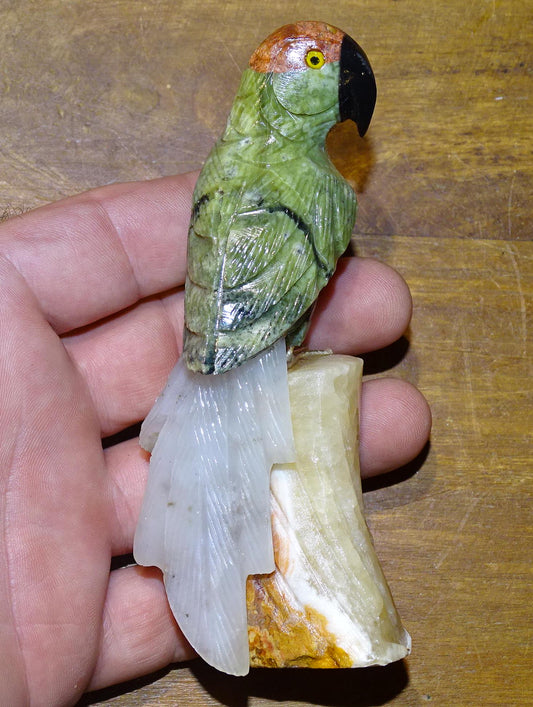 Statuette de Perroquet 'Amazone' Fait Main – Pièce Artisanale aux Très Belles Finitions, Objet Décoratif Unique et Élégant - 12 x 6 x 4 cm - 170,8 g