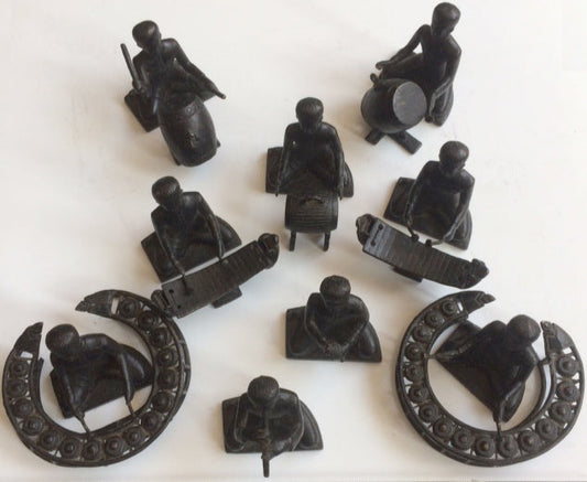 Mini-statuettes de Bali - Orchestre complet de musiciens, fait en bronze de 4 à 5 cm de haut !