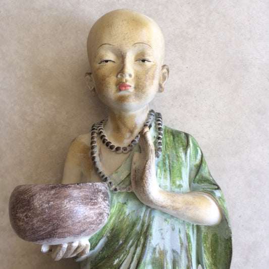 Moinillon Bouddhiste de taille XL, belle statuette de plâtre de couleur pastel - 63 cm - 4000 gr. Superbe pièce !