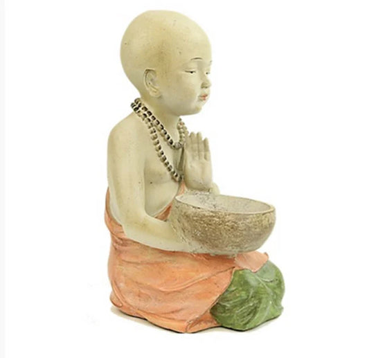 Moinillon Bouddhiste en prière, taille XL, belle statuette de couleur pastel - 34 cm - 1486 gr. - Peux servir de bougeoir !
