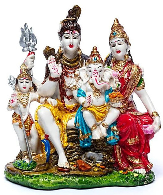 Statuette de Shiva Pariva/ Parvati, la famille de Ganesh, taille de 14 x12 centimètres - 355 grammes. Fait et peint à la main au Népal, parfait dans une salle de Méditation, Autel, Collection...