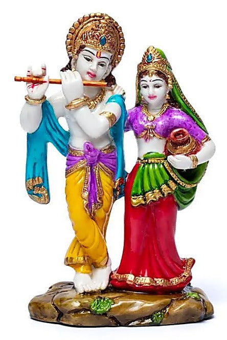 Statuette de Krisshna et Radha, taille de 15 x 10 centimètres - 260 grammes. Fait et peint à la main au Népal, parfait dans une salle de Méditation, Autel, Collection...