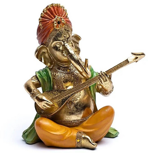 Ganesh assis jouant du SItar - 27 x 21 x 11 centimètres - 1280 grammes - Peint à la main !