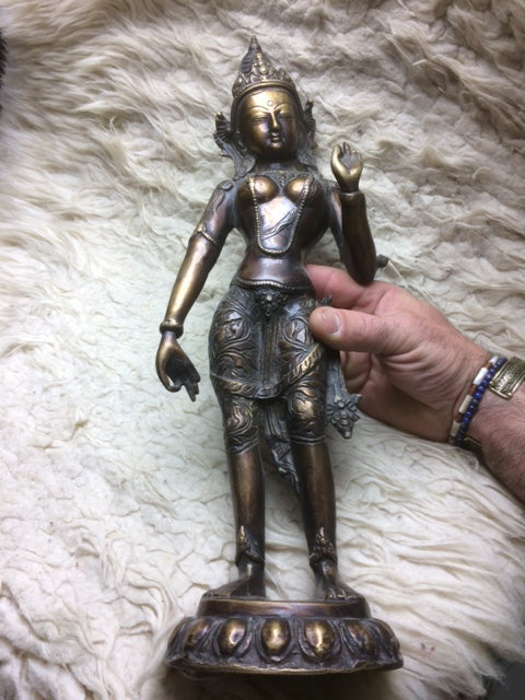 Tara 'blanche', statuette ancienne de Taille XL en laiton - 45 cm - 1,8 kg . Parfait dans une salle de Méditation, Autel, Collection, Exposition...!
