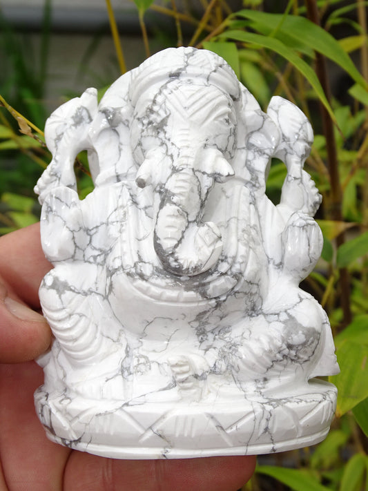 Ganesh en Howlite 'fait main', 117x86x50mm - 640 gr. - Superbe pièce !