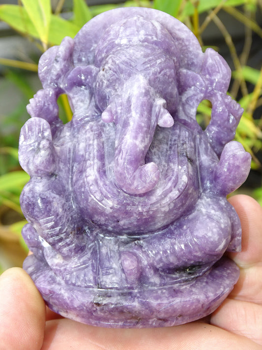 Ganesh en pierre de 'lepidolite' fait main, taille de 100 millimètres de hauteur x 70 x 48 - 377 grammes. Superbe pièce aux reflets violet magnifique pour 1 divinité Hindouiste éternelle !