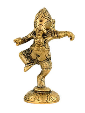 Ganesh 'dansant' en métal (laiton) - 10 x 4,5 cm - Parfait dans un Autel, Collection, Exposition...!