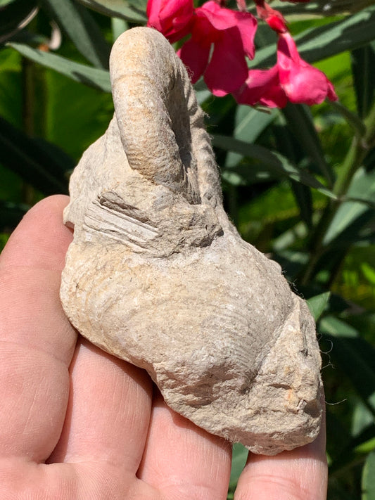 Ammonite naturelle en calcaire avec coquillage (Palourde), de 100mm x 57 x 48 - 181,6 grammes. Parfait pour collection, exposition...