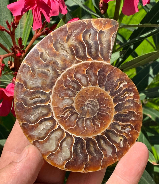 Ammonite sciée, de 110mm x 87 x 11 - 134,5 grammes. Parfait pour collection, exposition...