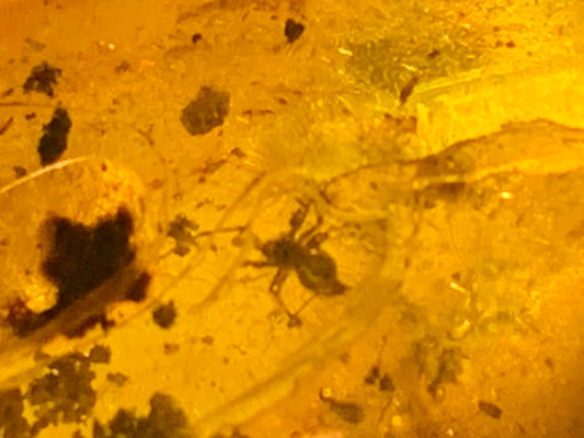 Ambre, galet avec inclusion d'une araignée, 40mm x20 x 10 - 4,1 grames. Superbe pièce pour bijouterie ou collection !