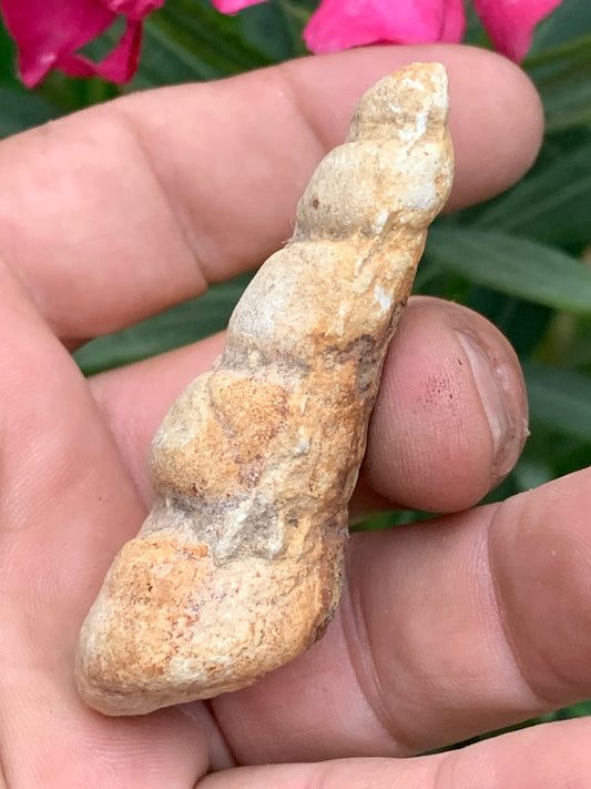 Coquillage fossile en calcaire, type Turritelle, de 68x30x22 millimètres/ 33,8 grammes. Parfait pour décoration, collection ou exposition...