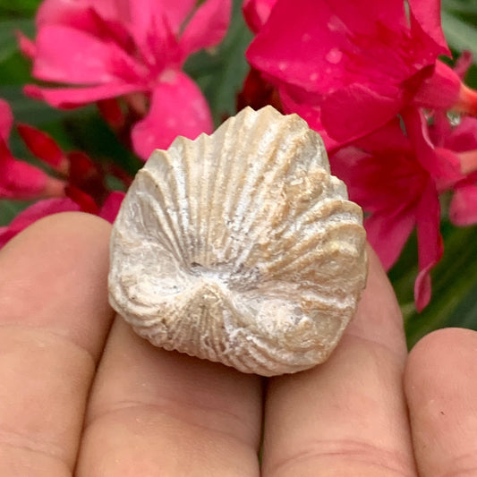 Coquillage bivalve fossile en calcaire de 34 x 31 x 31 millimètres / 31,7 grammes. Parfait pour décoration, collection ou exposition...