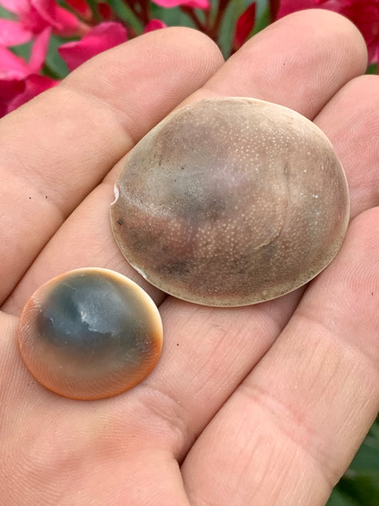Coquillage, Oeil de Sainte Lucie, de 38mm x34 x14 et 22 x20 x8 / 19,8 et 4,3 grammes. Parfait pour bijouterie, décoration, collection ou exposition...