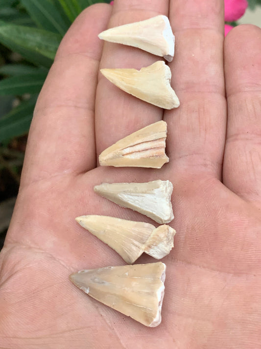 Dent fossile de requin, 'Odontaspissud, Lamnaserata' (Maroc), 6 pièces au choix de 27mm x14 x6 environ / 2 grammes environ. Parfait pour étude, collection ou exposition...