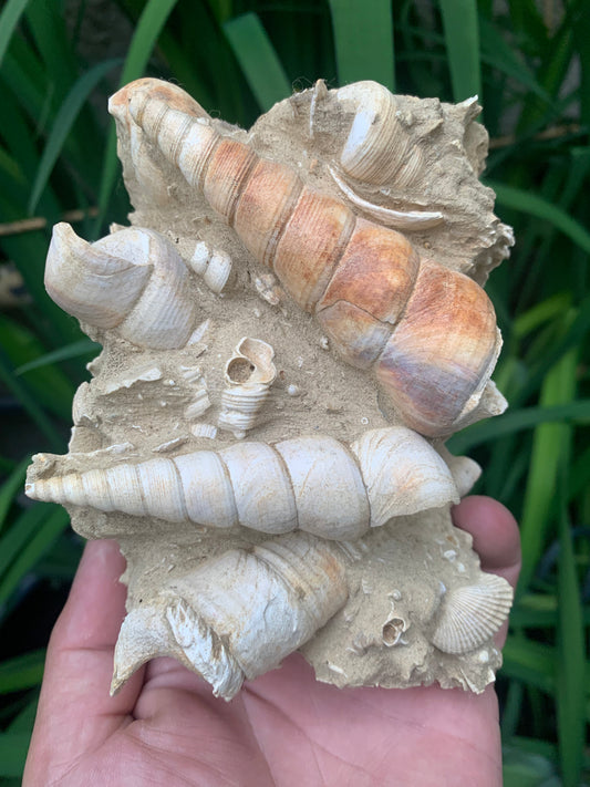 Coquillage de France (Turritelle) (Mer des Faluns, Seine-et-Marne - 77). Amas/conglomérat de 13 × 18 × 7 cm, 656 grammes. Daté d’environ 1 million d’années !