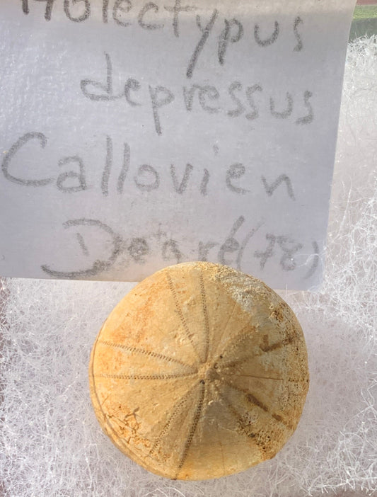 Oursin fossilisé aussi appelé 'échinide fossile', de 16 mm de diamètre x 10 - 2,4 grammes. Vendu avec boite 'loupe', parfait pour collection, exposition...