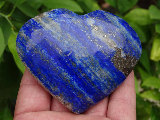 Coeur en lapis lazuli de taille L, 8,6 x 7,2 x 2,6 centimÚtres - 300gr. Belles finitions, des veines de pyrite dorée naturelles, le bleu des pharaons, magnifique piÚce !
