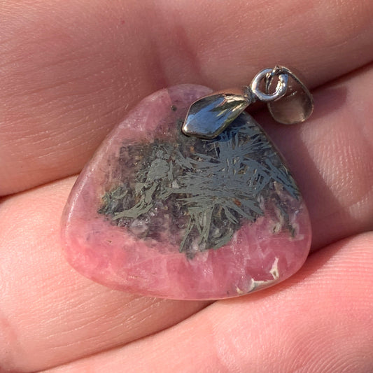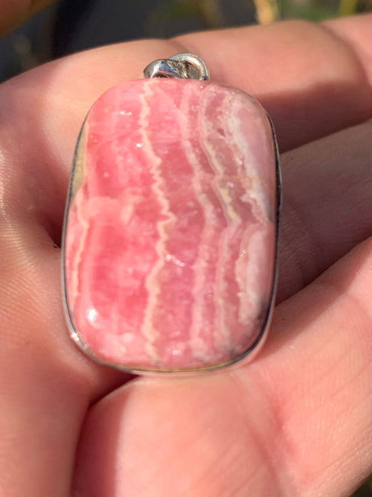 Rhodochrosite ! Pendentif en Argent de 35mm x15 x7 fait par Gem & Zen. Vendu avec un cordon réglable de couleur noire !