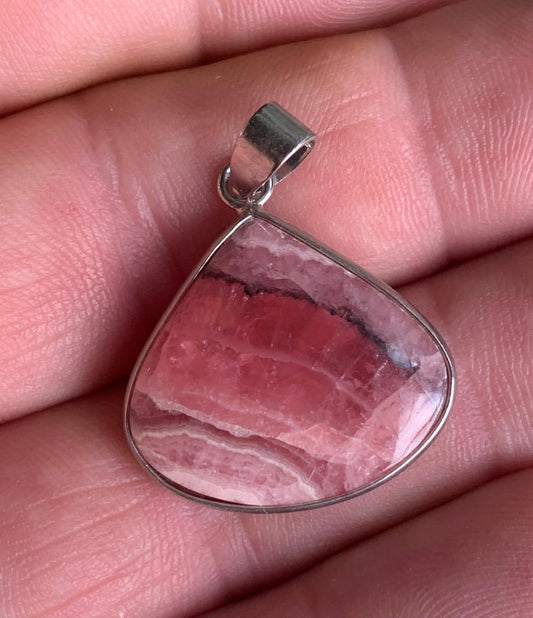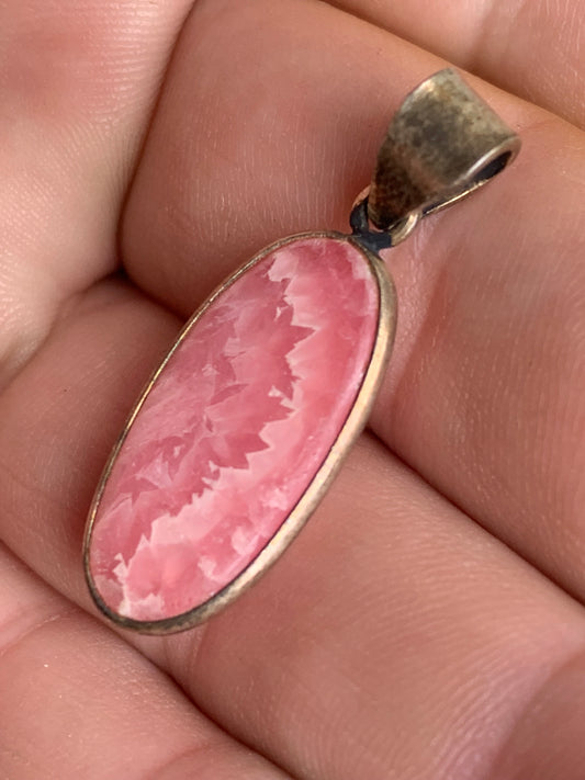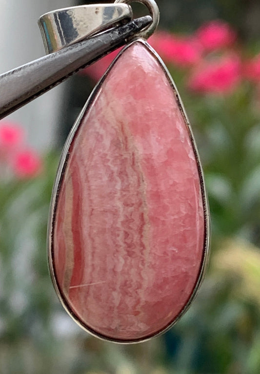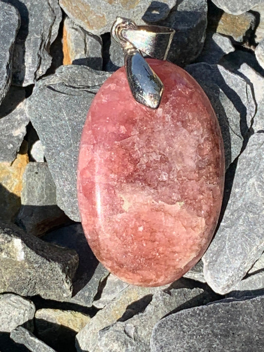 Rhodochrosite ! Pendentif en Argent de 40mm x24 x7 fait par Gem & Zen. Vendu avec un cordon réglable de couleur noire !