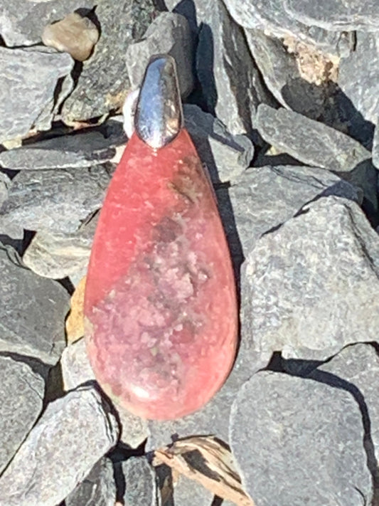 Rhodonite, pièce unique en Argent de 37 millimètres de hauteur x 8 millimètres de largeur x 7 d'épaisseur. Vendu avec un cordon réglable de couleur noire !