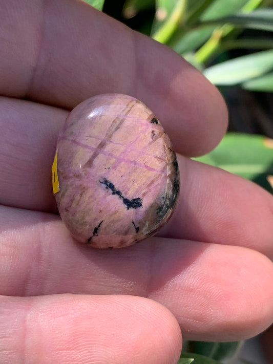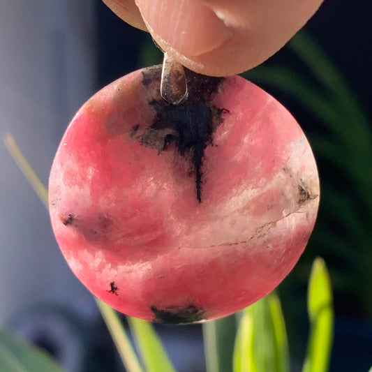Rhodonite, pendentif pierre roulée, de 27mm x23 x9. Vendu avec cordon réglable de couleur noire !