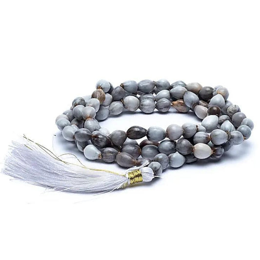 Mala de graines en Rudraksha de 108 perles de ± 8 mm - Taille 85 cm - Pochette de rangement incluse !
