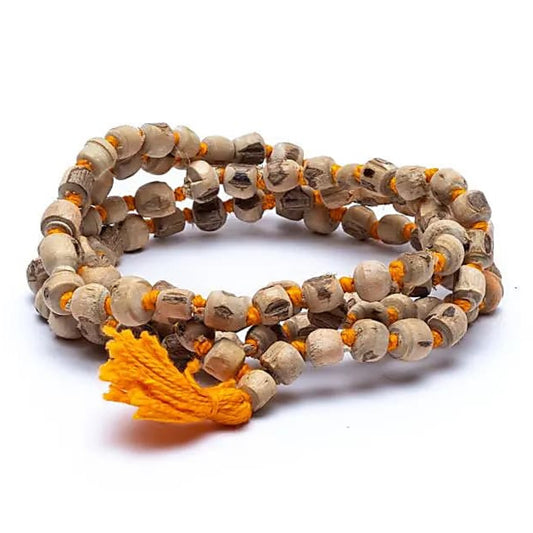 Mala en bois de Tulsi (Japa Mala / Basilic sacré) - 108 perles de ± 6 mm - 60 cm - Pochette de rangement incluse !