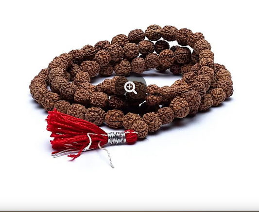 Mala en graine de Rudraksha (graine sacré) de 108 perles de 8 mm + floche rouge - 80 cm de long - Pochette de rangement incluse ! !