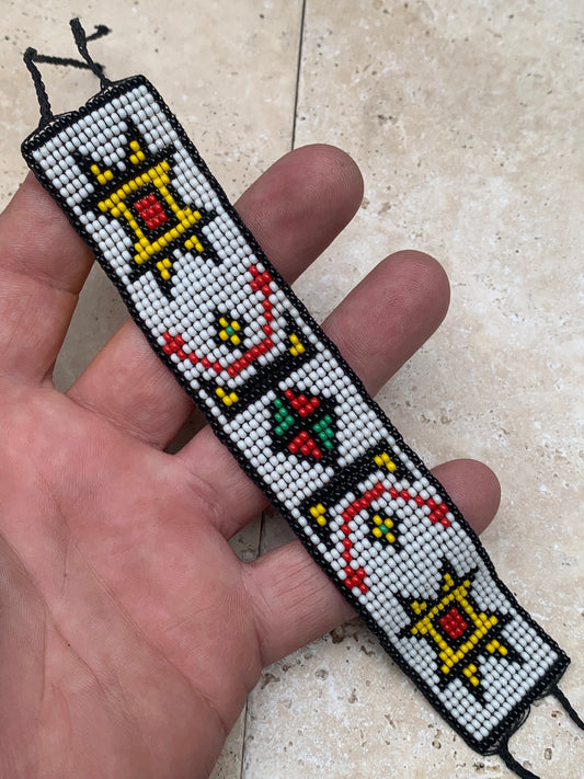 Bracelet amérindien en perles de rocaille 2 mm - 18,5 cm. Motifs authentiques faits main au Québec. Pour cheville ou poignet !