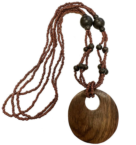 Collier/ sautoir de perles et pendentif en bois. 62 cm - Pendentif : environ 6 centimètres !